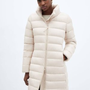 Abrigo Plumas Largo Plumas Entallado Mujer Abrigo Plumas Mujer Beige Chaqueta Acolchada Larga Con Capucha